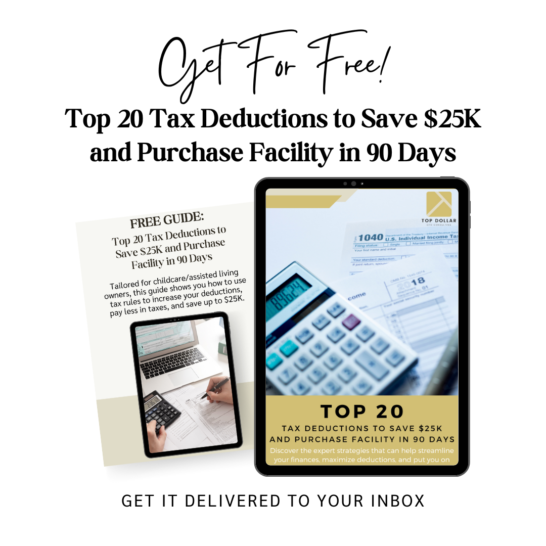 Don't miss out on an exclusive content, “Top 20 Tax Deductions to Save $25K and Purchase Facility in 90 Days”!